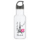 Uma garrafa de água personalizada, com uma ilustração da torre do Effel e Ooh La, escrita lateralmente. Uma impressão de batom rosa-quente deixada ao lado do famoso marco com o texto xoxo! Bonjour escrito em uma fonte no estilo parisiense que pode ser personalizada/alterada para atender às suas necessidades.
