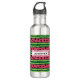 Garrafas de água com um padrão de melancia fofo. Casca verde em camadas de listras junto com uma camada de listras cor-de-rosa com dentro de sementes pretas. Diversão e design de verão. Um retângulo colocado sobre a parte superior com um dentro de nome personalizado.