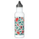Este é um padrão floral colorido de coloração aquosa com flores vermelhas e folhas verdes sobre fundo branco.