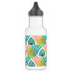 Padrão retrorreflector geométrico com folhas estilizadas de palma e guarda-chuvas de praia