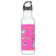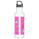 Unicórnio e arco-íris com texto sobre design de padrão de fundo rosa.