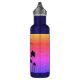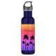 Um toque de glamour brilhante em uma garrafa de água colorida, personalizada, decorada com silhuetas de palmeiras.