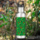 Um lindo padrão verde com flores silvestres e um papoila solteiro, vibrante e vermelha. Ao lado deles está uma garrafa de água, perfeita para ficar hidratada. Este é um drinque personalizado, e especificamente, é um drinque que que que que pode ser personalizado com um nome de sua escolha. A garrafa de água faz parte de uma coleção de tetinas que podem ser personalizadas com um nome personalizado, com um padrão decorativo verde, completo com designs de flor silvestre e um sotaque de papoila vermelha impressionante.