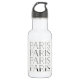 Esta garrafa de água na moda e chic diz "Paris" quatro vezes, em vários estilos elegantes de texto negro para um olhar parisiense de tendência.