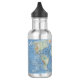 A soft pastel relief world map wraps around the bottle, showing land elevation and ocean depth through gentle color gradients and shaded terrain. The design is based on ETOPO global elevation data, a widely used cartographic dataset that represents the shape of the Earth both above and below sea level. A name field can be customized or removed, making it a thoughtful personalized gift for travel and map enthusiasts.