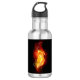 Pena de pavão brilhante feita de fogo e chamas sobre fundo negro.