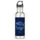 Garrafa Walter no símbolo do zodiac para Peixes em azul-prata-suave, sobrepostos com as estrelas da constelação, contra um fundo do céu estrelado formando de azul-da-meia-noite para preto.