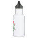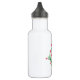 Frasco de água com flores de primavera, com desenho a tinta e a aquarela de uma planta abstrato, cor-de-rosa e verde sobre fundo branco personalizável.