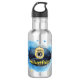 Prepare o seu filho para a escola ou pré-escola com estes na moda e adoráveis impressões da polícia de aquarela numa garrafa d'água. Mostra vários tons de azul, um fundo enfeitado com estrelas, e um chapéu azul de policial. O centro do chapéu apresenta um crachá que pode ser personalizado com o Departamento de Polícia da Cidade favorito do seu filho ou seu nome e número de sorte. Esta garrafa d'água em tamanho infantil combina com a escola, os parques infantis, os campos, as sonolências, as visitas a parentes e a viagem. Também faz um presente de excelente aniversário.