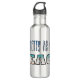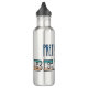 Você gosta da praia? Você gosta de garrafas de água engraçadas? Este diz Bonito As Beach. Uma bela fotografia de uma praia espia as letras.