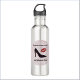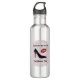 Garrafa de água branca com logotipo, incluindo um calçado de salto alto e um beijo de cor de morango. Letras escritas: MELHORAR O MUNDO: DEIXE AS MULHERES CHUTAREM.