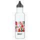 Retro Christmas Holly Jolly Vibes Trendy Holidays Personalized Name A garrafa de água apresenta o texto "Holly Jolly Vibes" em um roteiro em vermelho, verde e rosa acentuado com estrelas e rostos felizes fofos personalizados com seu nome abaixo. Elaborado por ©Evco Holidays www.zazzle.com/store/evcoholidays