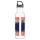 Personalize esta garrafa de bebida bonito com seu nome e inicial. O design apresenta coral de aquarela e rosas cor-de-rosa com folhagem e brilho falsa rosa de ouro sobre fundo azul marinho.