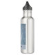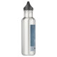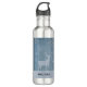 Garrafa de água personalizada com fundo de madeira azul. Camadas sobre o topo é uma silhueta de uma rena com grandes galhadas. Alguns flocos de neve bonito e estrelas caindo ao seu redor.