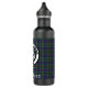 Uma garrafa de aço inoxidável elegante apresenta crachá de crista de madeira de Clã escocês sobre fundo de xadrez de tartan de clã. Texto personalizável no estilo inglês antigo branco.