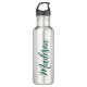 Uma garrafa de água de aço inoxidável verde monograma personalizada e ousada para uma garota ou cara que ama presentes simples e escritos à mão. Belo roteiro cursivo ao lado da sua garrafa soletrando seu nome.
