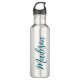 Uma garrafa de água inoxidável de monograma de turquesa personalizada de tendências para uma garota que ama presentes simples e escritos à mão. Belo roteiro cursivo ao lado da sua garrafa soletrando seu nome em tipografia elegante.