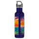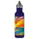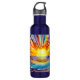 Arte do pôr do sol ao estilo bonito da aquarela sobre a colorida caneca de café do oceano. Azul brilhante, amarelo, céu laranja e água. "conteúdo genérico
