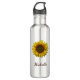 Boho botanical Yellow Sunflower bloom water bottle, with customizable script typography. Enjoy this personalized accessory item for yourself or as a gift for someone special.