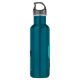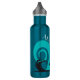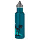 Frente garrafa de água de verão com surfista e palmeiras silhueta e saudação de Aloha.
