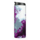 Olhando para cima para as árvores, vendo o céu azul e o roxo…