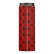 Garrafa Térmica A tall travel mug with a vibrant red plaid pattern