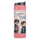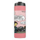 Aanbesteden houdt niet op, niet vanzelf. Thermosbeker met tekst "aanbesteden het houdt niet op, niet vanzelf" en design van Zazkia, geproduceerd voor Aanbestedingsnieuws
