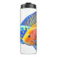 Um incrível abstrato de peixe, uma declaração vibrante impressão decorativa fazem um na moda com esta caneca fantástica e trazem talento contemporâneo para a sua cozinha.
