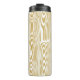 Garrafa Térmica Anéis de Madeira Dourados com brilho branco Fundo