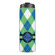 Padrão de Estilo Azul e Verde Monograma Deixe sua xícara ser tão única quanto sua preferência de bebida! A construção de paredes duplas deste desastre personalizado ajuda a manter suas bebidas quentes quentes e suas bebidas legal frias, enquanto mantém suas mãos confortáveis. A tampa do perfil baixo se encaixa bem para ajudar a evitar derramares e a parte inferior acolchoada dá uma aderência extra para que você possa tombar com segurança.