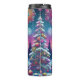 Esta ilustração vibrante apresenta uma fila de árvores de Natal adornadas com padrões coloridos, intrincados e abstrato. A cena balnear cânica de inverno inclui um céu gradiente cheio de flocos de neve e estornamentos semelhantes a mandala, assim como grandes ornamentos padronizados no chão de neve, criando um gráfico festivo e mágico de feriado.
