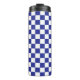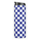 Arte digital abstrato de quadrados azuis e brancos em uma formação controlada.