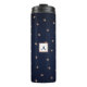 Garrafa Térmica Azul Escuro e Rosa Dourado Estrelas Brilhantes