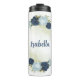 Garrafa Térmica azul marinho empoeirado floral verdejante