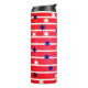 Este gráfico, Flag design, criado com. edição digitalizada, tem um padrão de cinquenta, branco e azul-escuro, estrelas - e é exibido sobre um fundo listrado, vermelho e branco.
