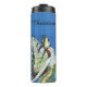 Esta garrafa térmica para manter suas bebidas frias ou quentes tem uma bela fada com cabelo vermelho e asas de borboleta monarca vestindo um vestido de ouro sob um céu azul. Personalize seu nome com o modelo.