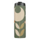 Um design de inspiração bibliográfica de formas simples em cores rústicas de verde, bronzeado, bege, marrom e laranja.