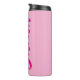 Crie seu próprio tumbler térmico personalizado ou monograma para ela. Personalize o tamanho e a cor do estilo do script de caligrafia escrita à mão em negrito, conforme necessário para o seu nome. Altere a cor de fundo da rosa claro ou as cores de texto rosa quente para o seu favorito. Gire o nome se preferir que o nome seja lido de cima para baixo.