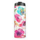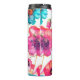 Garrafa Térmica Bolhas vermelhas e flores azuis com borboletas, qu