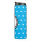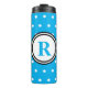 Na moda monograma inicial de dentro preto no centro de batedores. Bolinhas brancas sobre fundo azul brilhante bonito. Personalize com a sua inicial. Novos círculos geométricos de tendências em trombadores para o seu estilo único. Visite minha loja para obter acessórios correspondentes. Designs originais de arte © TamiraZDesign.