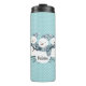 Uma adorável trio de bonecos brancos de neve em um padrão de bolinhas azul claro cria um batedor térmico festivo para todos. Personalizar com nome ou outra mensagem personalizada.