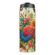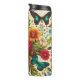 Garrafa térmica com fundo biológico com flores e borboletas.
