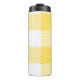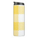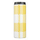 O Tumbler Térmico da Xadrez Branca e Amarela Moderna é oferecido para uso em casa e em viagem.