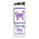 Silhueta de cão de boi roxo, rosa, amarelo e azul de abstrato digital. Este tumbler térmico certamente coloca um sorriso em qualquer rosto de amante de cachorro. Além disso, é ecológico, para que ela possa guardar por anos. Mude "Eu amo meu cachorro"/ "Nome" com qualquer texto que você quiser em ambos os lados da garrafa.