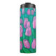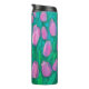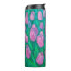 Tumbler térmico com pintura floral colorida, cheio verde esmeralda de lindas flores de primavera. As tulipas cor-de-rosa simbolizam um sentimento de felicidade, autoconfiança e positividade. Este excelente ajustado para Páscoas ou saudações do dia da Mulher, ou como presentes de aniversário para meninas e mulheres. Paleta de cores: Emerald e Mint Green, Rosa, Lavanda. © Clipso-Callipso/Julia Khoroshikh www.juliakhoroshikh.art #tulipsart #pinktulips#tulipainting #springflower #floralart #floralprint #floralpillows #contemporaryfloral #wildflower #floralart #summerblossom #drinkware #springgifts