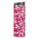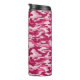 Estes Tumbler térmicos de camo feminino apresentam um padrão de camuflagem em tons de rosa escuro e rosa claro.
