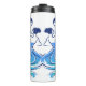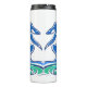 Caminhe para a hidratação. Casal de dança em blues e verdes adornam a caneca de viagem.