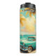 Garrafa Térmica Carro branco e lacrimogênio em uma praia tropical