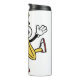 Um personagem animado de banana cartoon com grandes olhos, luvas e tênis, balançando e dançando.