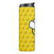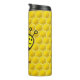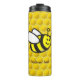 Cartoon voador de abelha sorridente sobre fundo de colmeia de abelha sem costura.